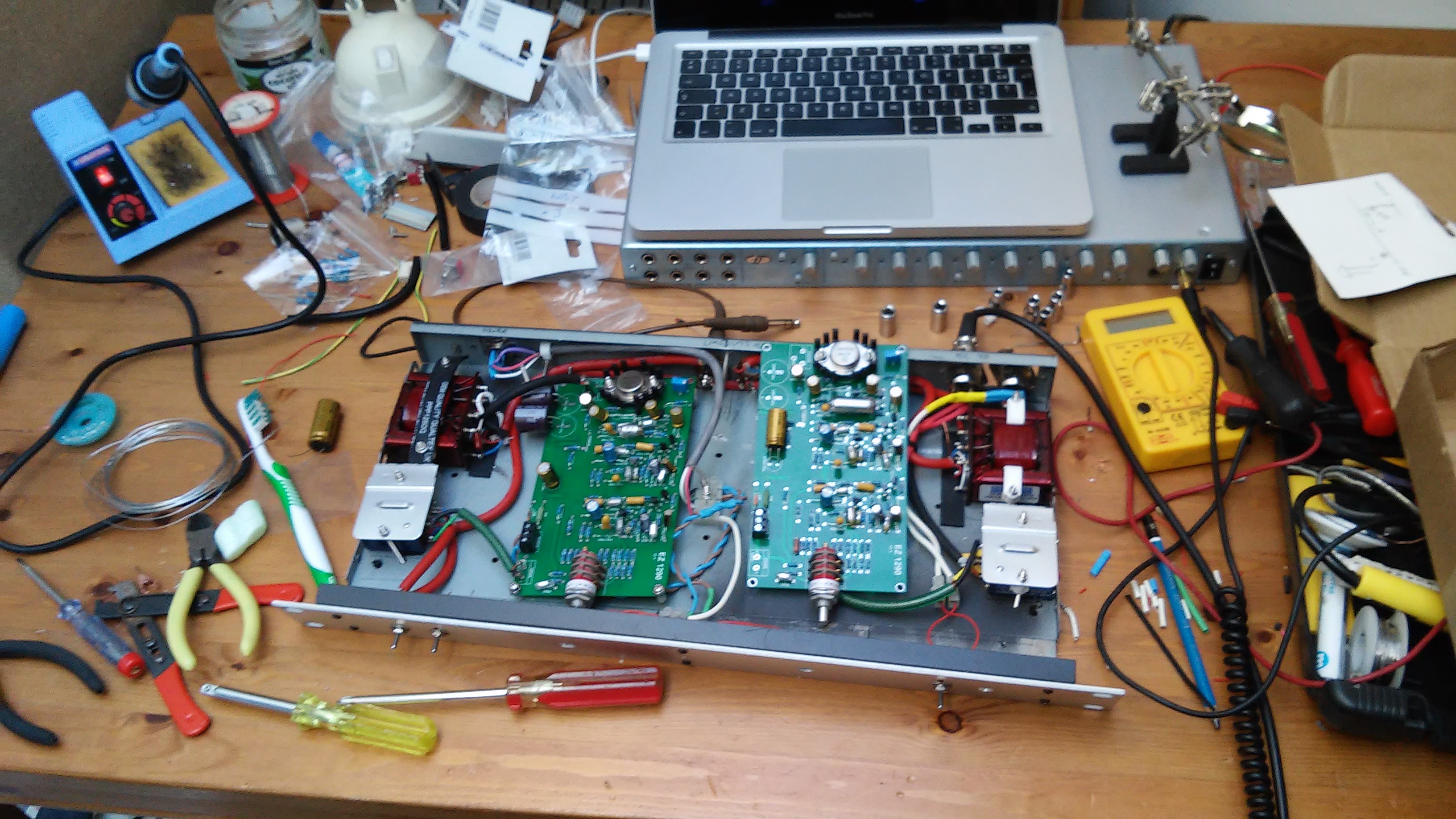 All in all it has been a lot of work (and expense) to get these mic-pres up and running, however, they work beautifully and I’ve been getting some great results on guitars, vocals and drums. I’m even starting to use words like ‘warm’, ‘open-sounding’ and ‘big’ when I describe the recordings. In the next post I will put up some examples to illustrate why I think they are worth the effort.